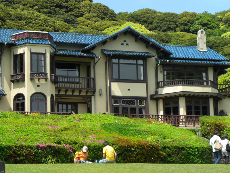 ここの庭園へつづく芝生は自由に開放されているらしく、当日は写生会をされてる方や、のんびり団欒している家族など微笑ましい光景が広がってました。