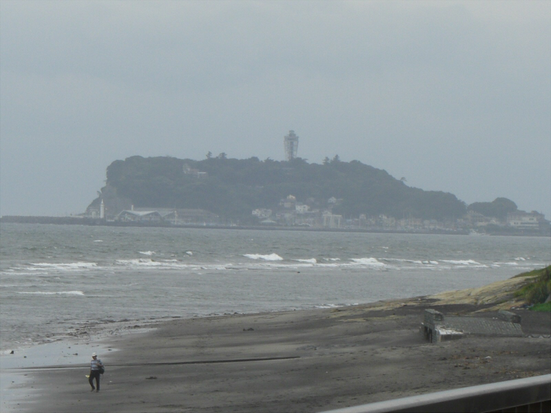 湘南の海を眺めながら、見えてきました!江ノ島が!!